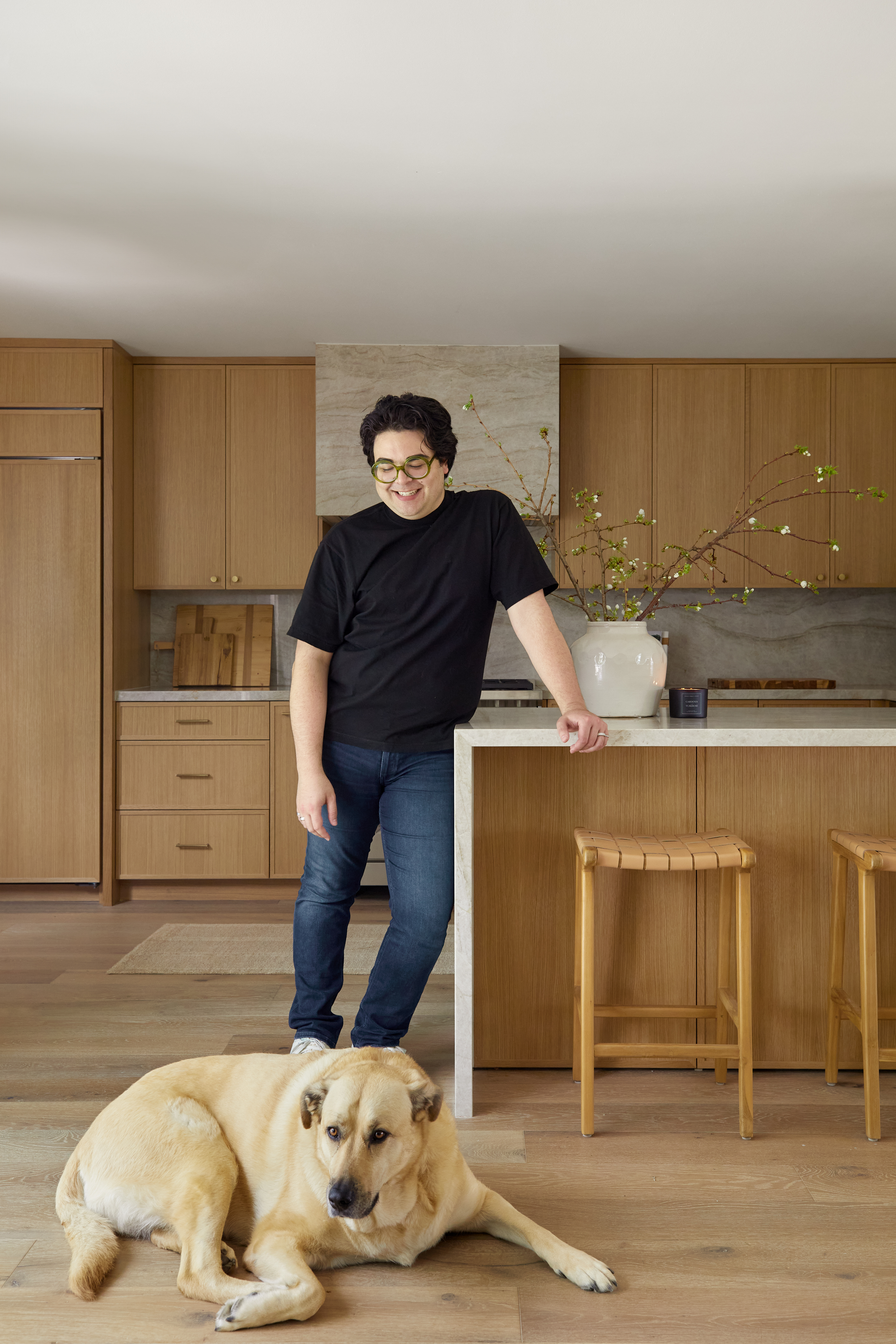 This home features an organic aesthetic with oak, marble,